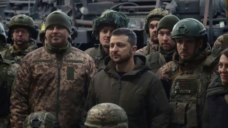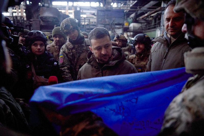 Le président ukrainien à Bakhmout, une ville sur le front de l'est du pays, ravagée par d'intenses combats, avec les forces russes qui tentent de la prendre depuis l'été.