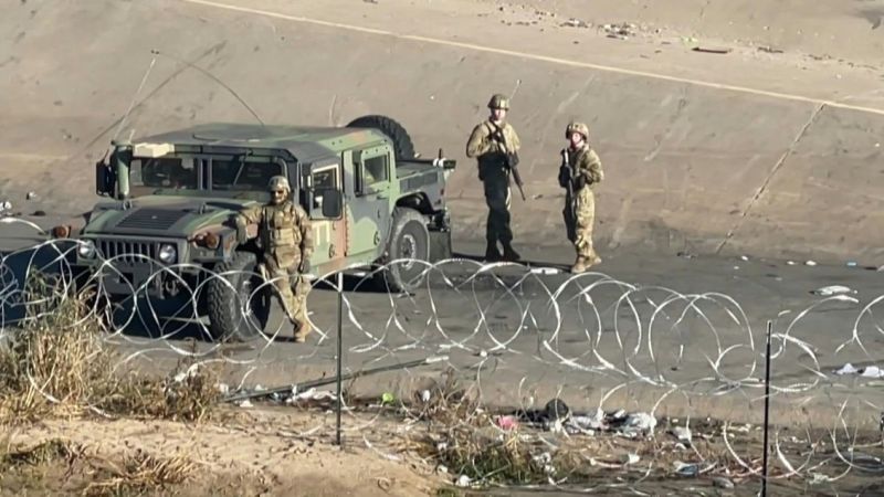 Des migrants à la frontière entre le Mexique et les États-Unis parlent avec des soldats américains à travers une clôture de barbelés, après que la Cour suprême des États-Unis a stoppé la suppression imminente de la mesure "Title 42". (AFP)Exode vénézuélien
