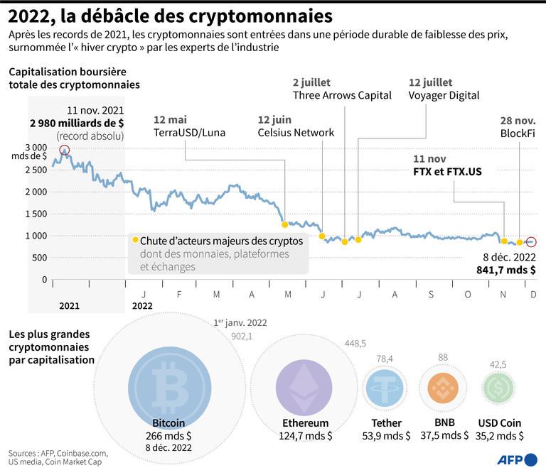 Fin novembre, le personnage central du plus gros scandale de l'histoire des cryptomonnaies avait affirmé ne plus avoir que 100.000 dollars disponibles. A son pic, en début d'année, sa fortune avait été estimée à 26 milliards de dollars, entièrement appuyée sur les parts de ses sociétés, qui ont fait depuis faillite.