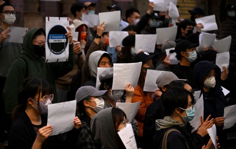 Une vague de manifestations contre la politique "Zéro Covid" avait secoué la Chine en novembre dernier. De nombreux protestataires avaient brandi une feuille blanche, symbole de la censure qui sévit sur les réseaux sociaux (AFP)