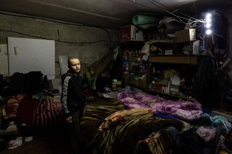 "Bonjour, je suis Gleb". Au fond d'une cave aménagée où vivent depuis huit mois une vingtaine de personnes, un adolescent de 14 ans au visage sérieux de petit homme, cheveux ras et anneau à l'oreille, tend une main ferme aux visiteurs. Il est le seul mineur, tous les autres enfants sont partis.