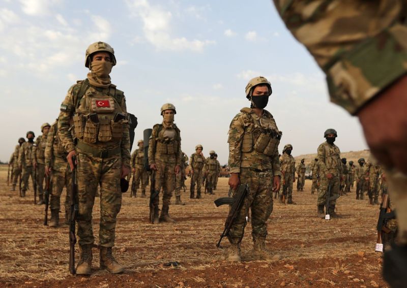 Des membres de groupes rebelles soutenus par la Turquie en exercice, en Syrie. (AFP)Pourquoi ce timing?