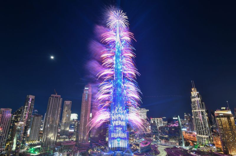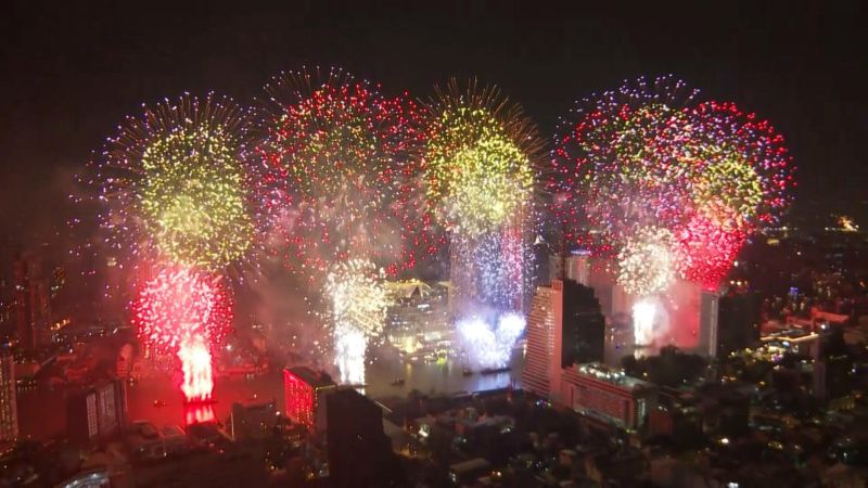 Quelques secondes avant minuit, des centaines de milliers de bras se lèvent en même temps: chacun filme par téléphone le début du feu d'artifice. Comme hypnotisés, beaucoup lancent en même temps des "waouh" d'admiration.