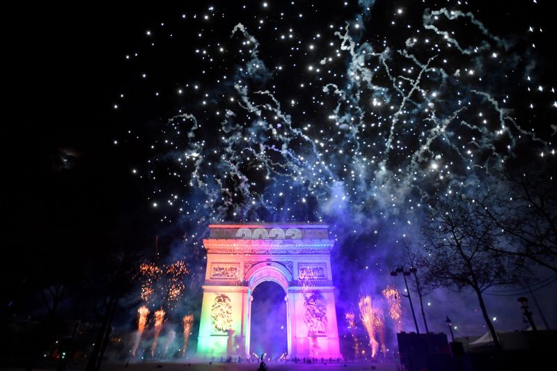 Sur le thème de la fête et de l'amour, la ville a offert un spectacle pyrotechnique de plusieurs minutes, avec en bande son les chansons de Clara Luciani, Harry Styles, Juliette Armanet ou Pink, après deux heures d'animations visuelles et musicales autour de l'Arc de Triomphe où le mot "Paris" était régulièrement projeté.