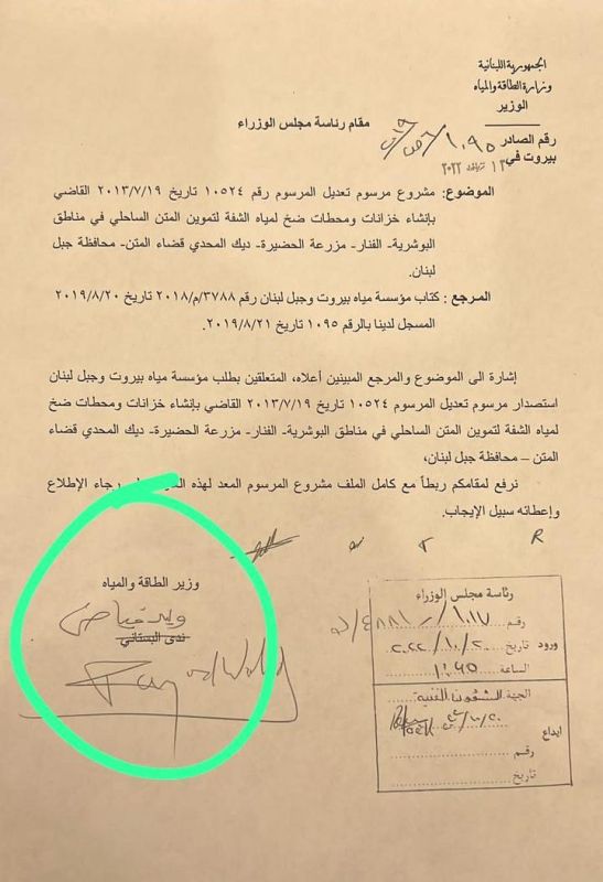 Document envoyé par le ministre sortant de l'Énergie Walid Fayad à la présidence du Conseil des ministresLire aussi