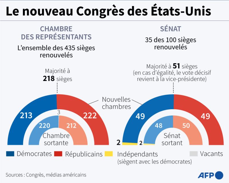 Avec les républicains majoritaires à la Chambre, Joe Biden et les démocrates ne pourront pas faire passer de nouveaux grands projets. Mais avec un Sénat aux mains des démocrates, leurs rivaux non plus.