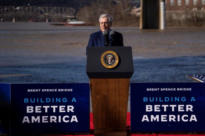 "Nous avons beaucoup de désaccords. Mais ce qui importe, c'est qu'il est un homme de parole", a dit Joe Biden à propos du patron de la droite au Sénat. Mitch McConnell a lui estimé que la mise en chantier de ce fameux pont n'était rien de moins qu'un "miracle législatif", en référence à l'enveloppe de quelque 1.200 milliards de dollars votée par le Congrès en novembre 2021 pour rénover les infrastructures décaties de la première puissance mondiale.