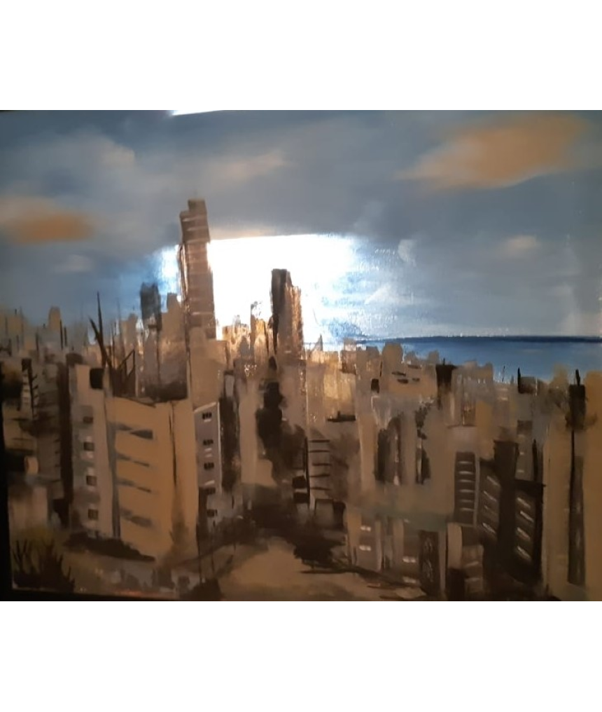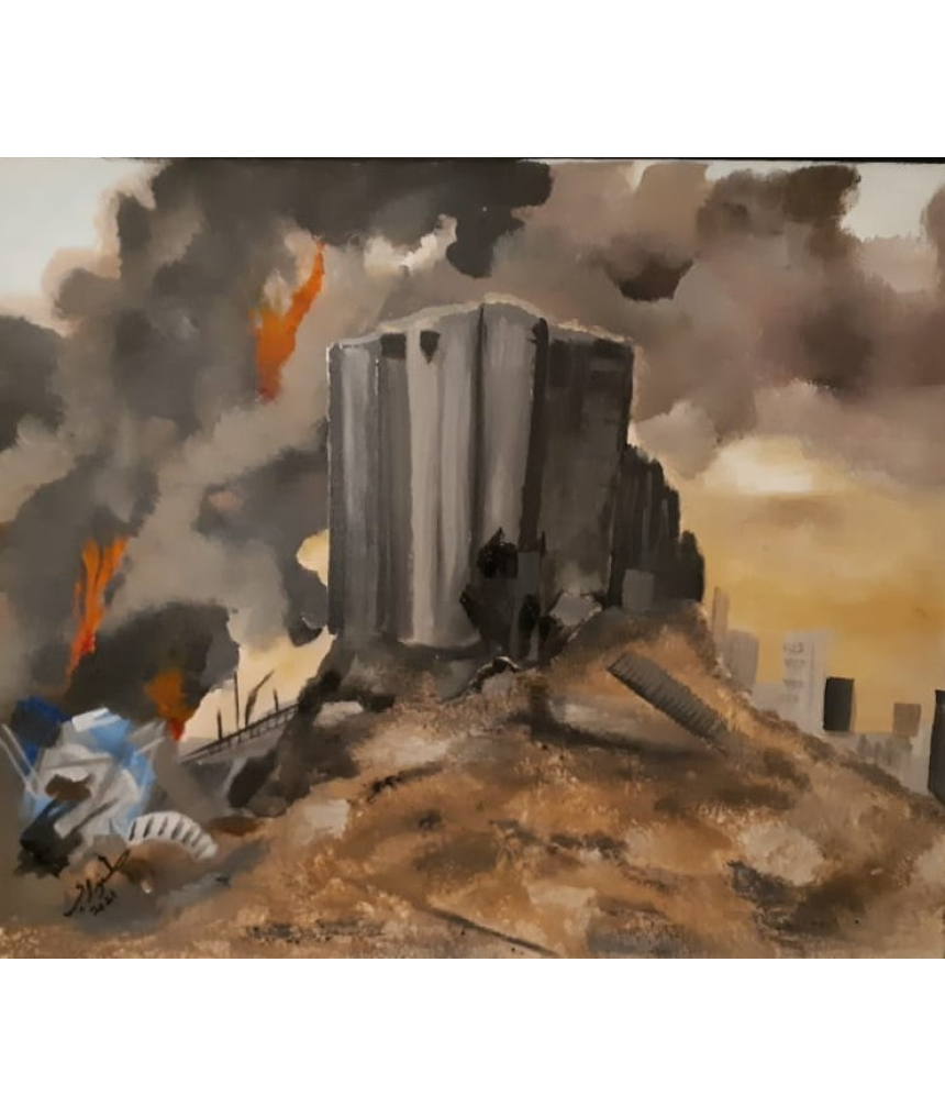 Les tableaux de Ghada s’assombrissent après la terrible explosion du 4 août. Murs effondrés, façades saccagées, amas de pierres, ponts coupés remplacent alors l’univers lumineux, insouciant et coloré de l’artiste.