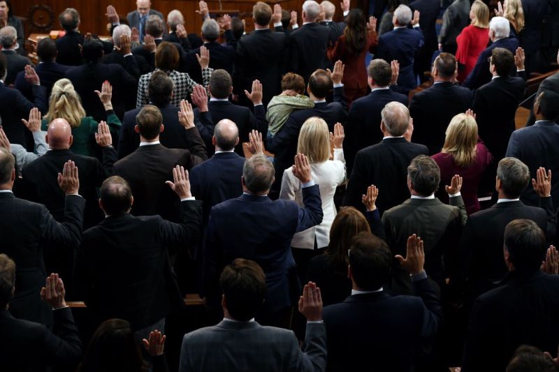 Le président élu de la Chambre des représentants des États-Unis, Kevin McCarthy (hors cadre), prête serment aux membres du 118e Congrès au Capitole des États-Unis à Washington. (AFP)Capitole, an II
