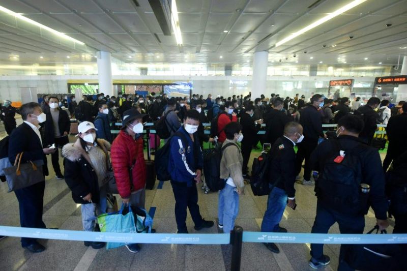 Les aéroports étaient bondés après cette nouvelle levée de restrictions (AFP)À l'aéroport international de Pudong, à Shanghai, une femme prénommée Pang a déclaré à l'AFP qu'elle était ravie de cet assouplissement du règlement.
