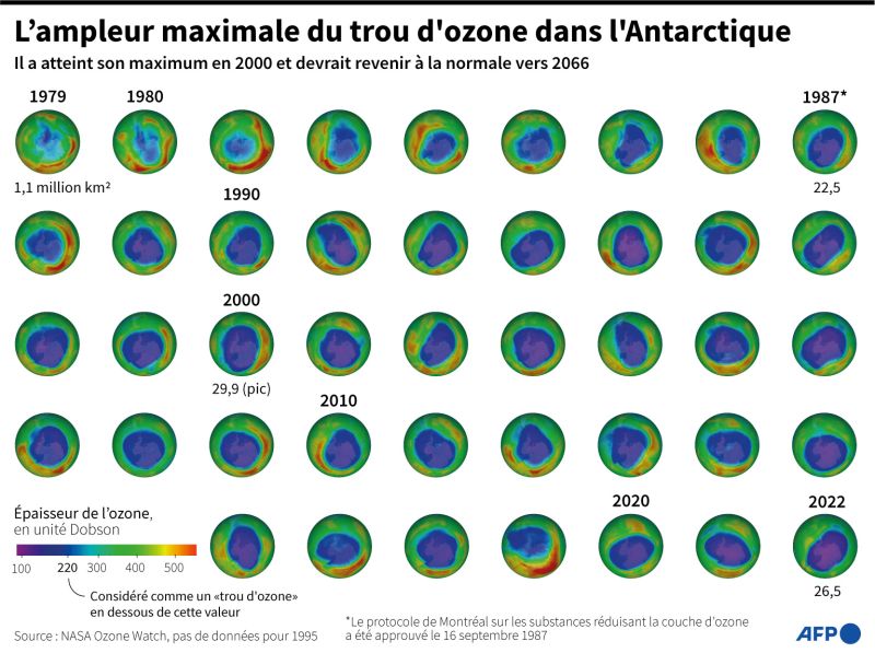 "Si les politiques actuelles restent en place, la couche d’ozone devrait retrouver les valeurs de 1980 (avant l’apparition du trou) d’ici environ 2066 au-dessus de l’Antarctique, 2045 au-dessus de l’Arctique et 2040 dans le reste du monde", indique l'ONU Environnement dans son estimation quadriennale.