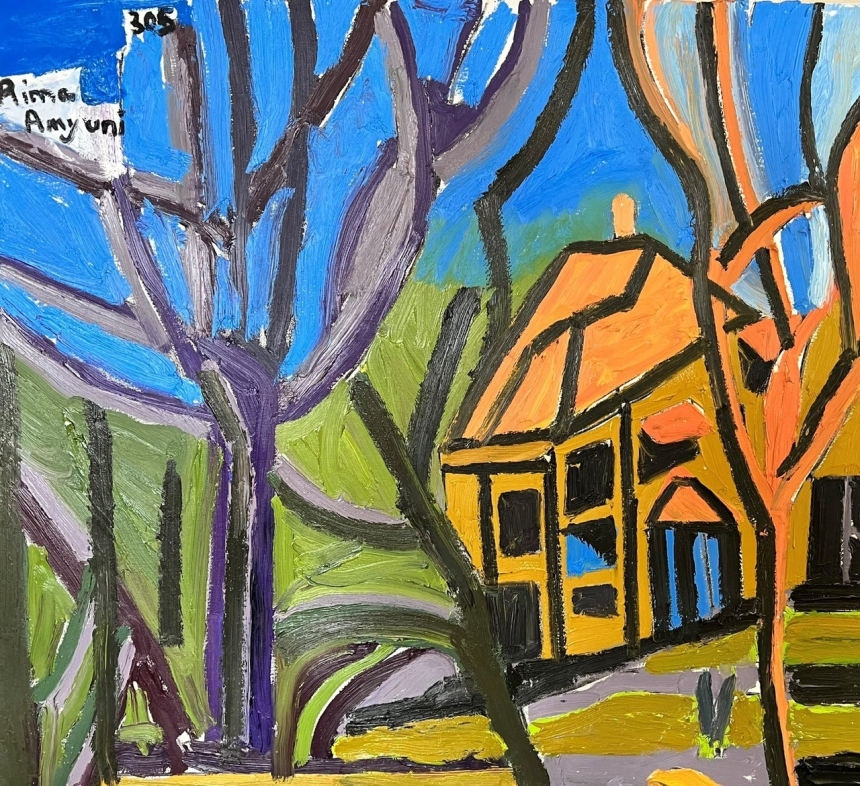 La tristesse est sublimée en joie, ses portraits sont aussi ceux de son pays, la nature est sa source de sérénité. Elle la peint comme un conte fantastique que l’on raconte à un enfant qui croit aux fées et aux elfes. Elle donne vie à des objets, elle raconte des histoires que l’on a envie d’écouter et de lire sur ses toiles.