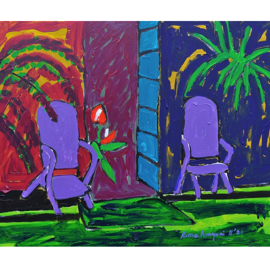 Rima Amyuni n’a jamais cessé de peindre, malgré les guerres et les conflits du pays, elle n’a pas non plus regretté d’être rentrée au Liban. On croirait que la puissance et l’intensité de ses couleurs découlent de cette situation dans laquelle elle a vécu.