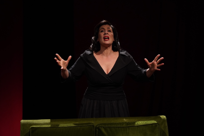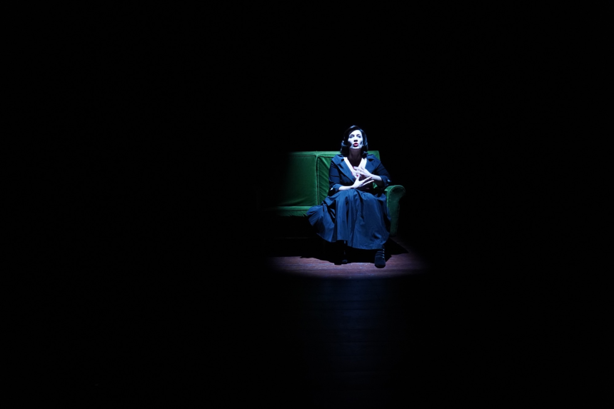 Une femme hystérique, une femme déchaînée, une femme auteure, une femme chanteuse d’opéra, une femme sans censure. Une femme aux mille facettes. Une femme à moitié femme, parce qu’elle aime… et quand on aime, une moitié de soi est ravagée, habitée par l’autre. Elle est une femme qui sourit quand elle le voit, lui. Qui?... Lui, le metteur en scène? Lui, son mari? Lui. Cela suffit.