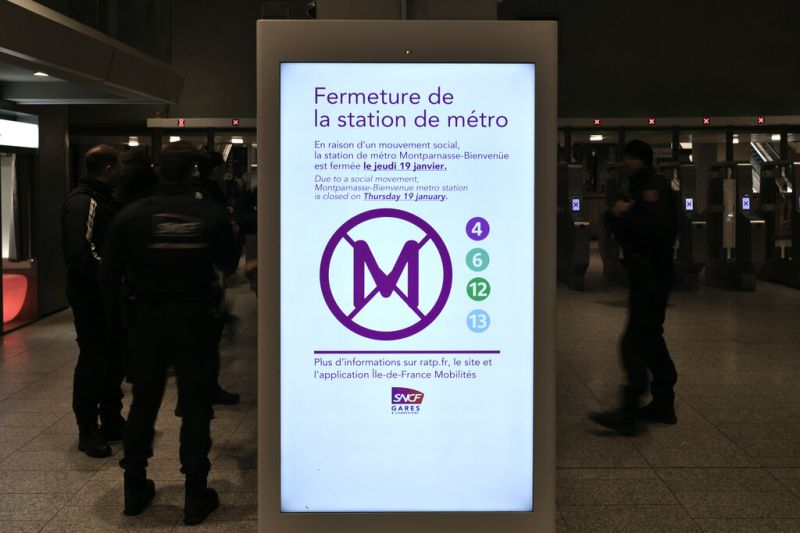 Fermeture de la station de métro Montparnasse-Bienvenüe en raison de la grève (AFP)"Ce sera un jeudi de galère (...), de fortes perturbations dans les transports", a averti le ministre délégué aux Transports, Clément Beaune, en appelant à différer les déplacements ou à télétravailler.