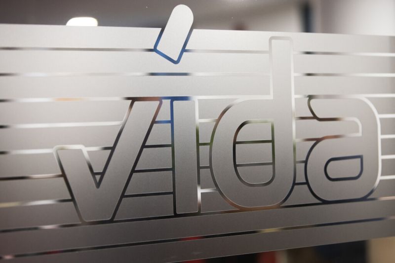 Le logo de VIDA, un syndicat représentant les travailleurs des transports et des services en Autriche (AFP)