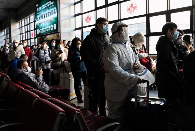 Un passager portant un équipement de protection individuelle (EPI) fait la queue à la gare de Pékin Ouest. (AFP)Célébrer dignement