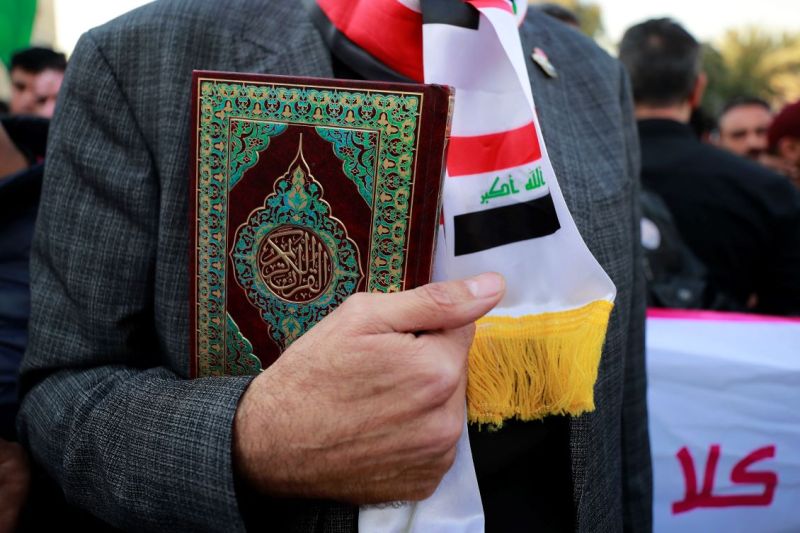 Un Irakien tient le Coran lors d'une manifestation devant l'ambassade de Suède à Bagdad. (AFP)Blocage pérenne