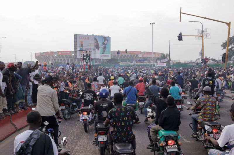 Dès le milieu de la matinée, des Kinois avaient commencé à se rassembler aux abords de l'aéroport international (AFP)