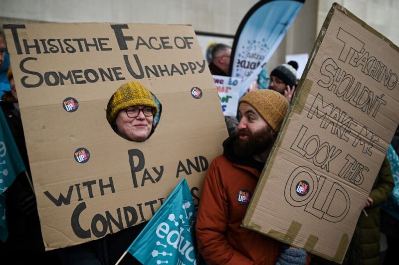 Des milliers d'écoles ont été fermées au Royaume-Uni alors qu'un demi-million de travailleurs ont manifesté dans les rues (AFP)