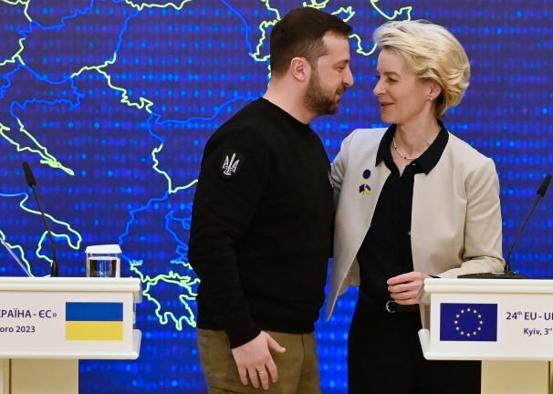 Le président ukrainien Volodymyr Zelensky et la présidente de la Commission européenne Ursula von der Leyen lors du sommet UE-Ukraine à Kiev le 3 février 2023.