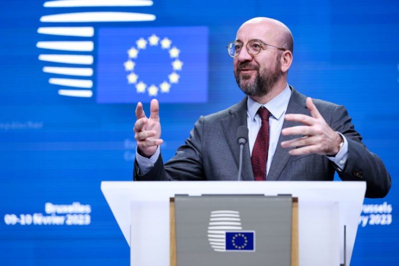 Le président de la Commission européenne, Charles Michel, lors d'une conférence de presse à l'issue du sommet des dirigeants de l'UE à Bruxelles, le 10 février 2023. (Photo de Kenzo TRIBOUILLARD / AFP)