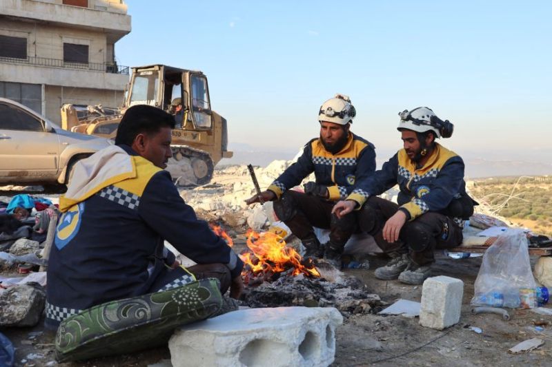 Des membres de la Défense civile syrienne, connus sous le nom de Casques blancs dans le village de Salqin à la frontière avec la Turquie, le 10 février 2023 (Photo de Mohammed AL-RIFAI / AFP)Mercredi, Damas a officiellement sollicité l'assistance de l'UE. La Commission européenne a demandé aux Etats membres de répondre favorablement.