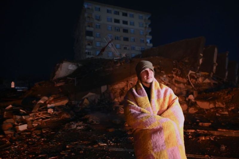 Un homme regarde le personnel de secours à la recherche de victimes et de survivants à travers les décombres de bâtiments à Kahramanmaras, en Turquie. (AFP)"Pas d'État, pas de police"