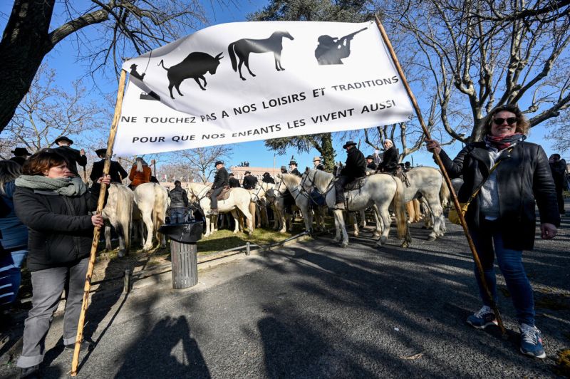 En guerre contre les "écolos bobos" et "l'écologie punitive", les partisans de la tauromachie ont manifesté en masse à Montpellier, dans le sud de la France. "Nous ne sommes pas des barbares", ont affirmé les manifestants, qui militent pour la défense des traditions et de la ruralité.