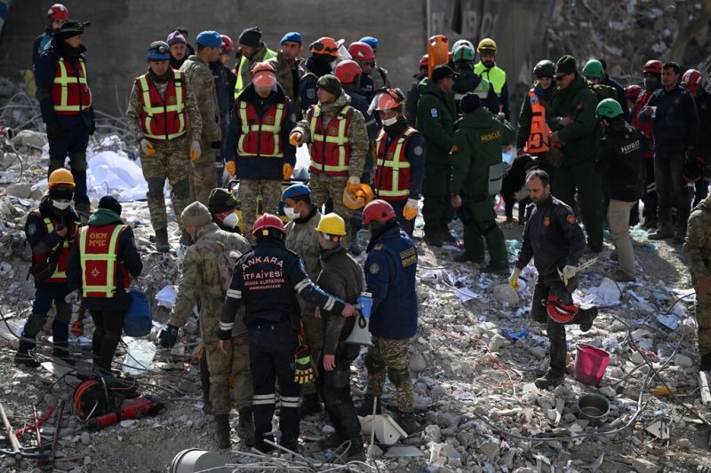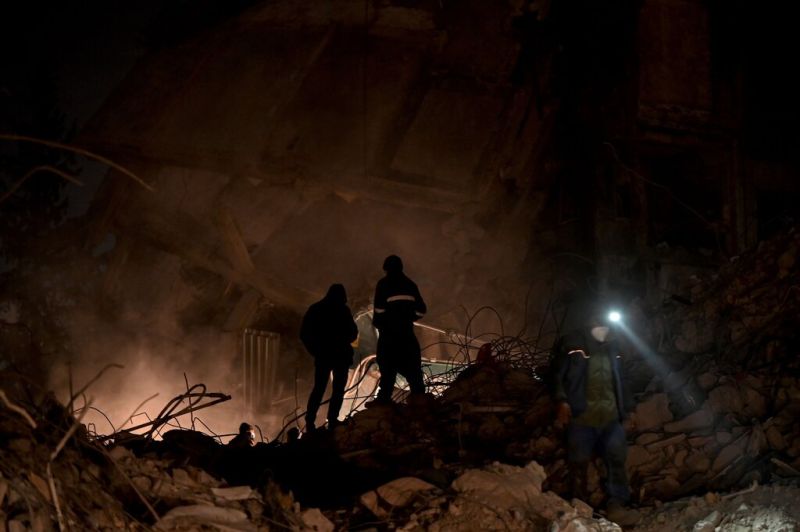 Les pompiers d'Ankara et les équipes de recherche et de sauvetage kirghizes fouillent les décombres des bâtiments effondrés à Kahramanmaras en Turquie (AFP)Selon le ministère syrien des Transports, 62 avions chargés d'aide ont jusqu'à présent atterri en Syrie, dont un d'Arabie saoudite, une première depuis dix ans, d'autres étant attendus dans les heures et les jours à venir, en provenance en particulier du royaume.
