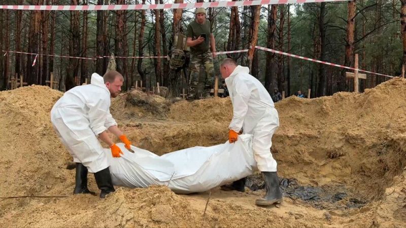 L’armée exhume une fosse commune de soldats ukrainiens à Izioum (AFP)"Crimes contre l'humanité"