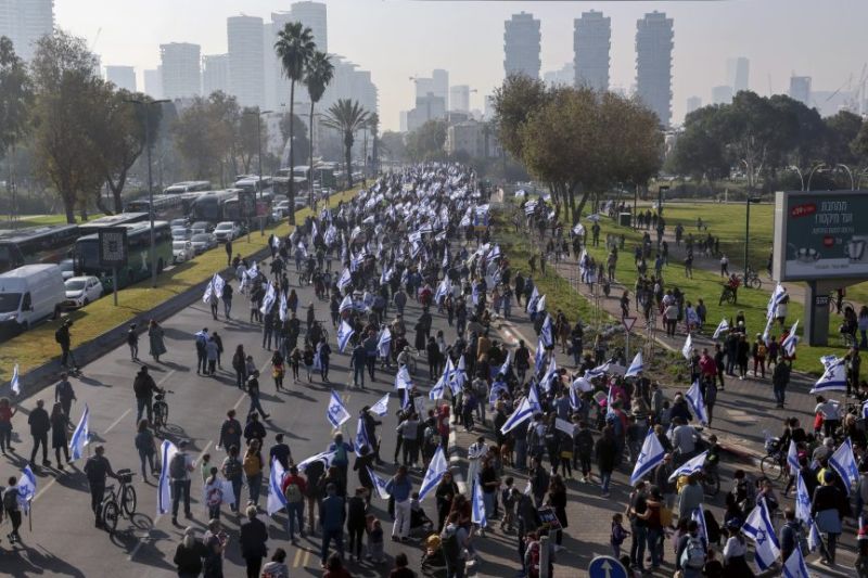 Le projet de réforme de la justice annoncé début janvier par le gouvernement mobilise une forte partie de l'opinion publique contre lui. "L'Etat est en danger", a déclaré à l'AFP Dvir Bar, manifestant de 45 ans venu de Holon dans le centre d'Israël. Ce projet "est une tentative de coup d'Etat visant à transformer Israël en dictature", poursuit-il.