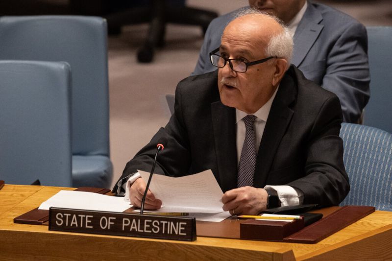 L'Observateur permanent de la Palestine auprès des Nations Unies, Riyad H. Mansour, s'adresse à la réunion du Conseil de sécurité des Nations Unies sur la situation au Moyen-Orient (AFP)