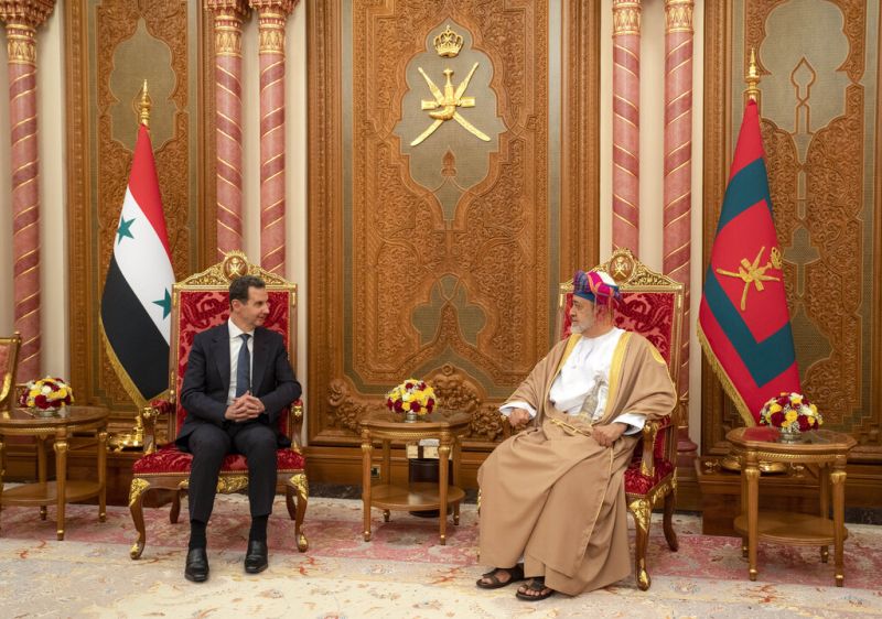 En pleine campagne de réconciliation avec les pays arabes, le président syrien Bachar al-Assad s'est rendu à Oman. Il a été reçu par le sultan Haitham ben Tariq al-Said dont le pays est l'une des rares nations arabes, et la seule dans le Golfe, à avoir toujours maintenu des relations diplomatiques officielles avec Damas depuis 2011.