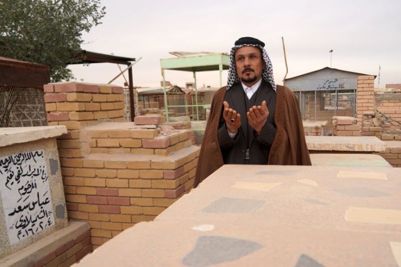 Ici repose "le martyr Ahmed Nasser al-Mamouri. Date du décès: 7 avril 2016", lorsque l'armée irakienne épaulée par une coalition internationale était en pleine guerre pour reprendre au groupe Etat islamique le territoire irakien qu'il occupait.