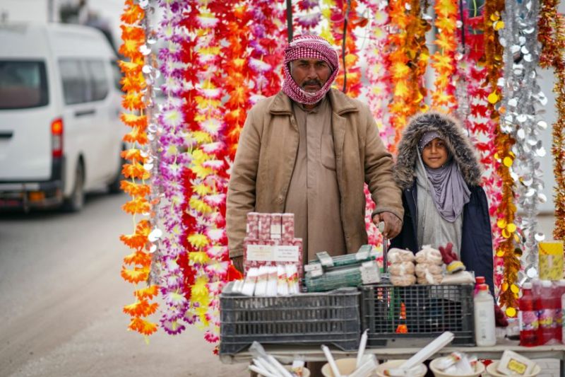 Des vendeurs proposent des bouteilles d'eau de rose et de fausses fleurs aux visiteurs du cimetière (Photo par Ayman HENNA / AFP)Témoin de l'histoire irakienne