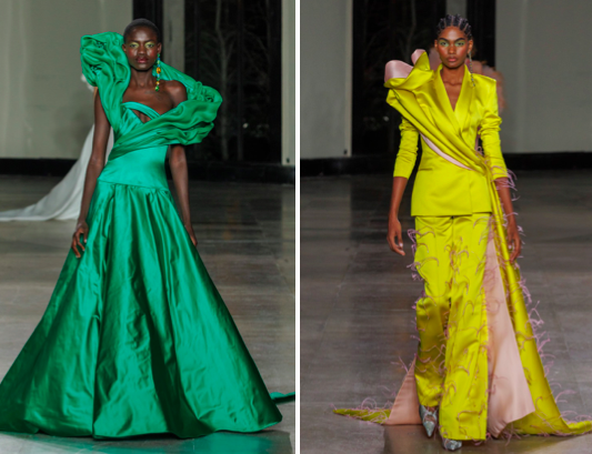 La collection de Georges Chakra est une interprétation moderne d'une certaine extravagance inspirée d’une envie de fraîcheur. Le créateur libanais joue avec les codes avec un mélange de fantaisie et de sobriété. En résulte une explosion de couleurs cinématographiques et audacieuses telles que le jaune néon, le corail profond et la menthe étincelante, mais aussi des couleurs délicates et poétiques telles que la chartreuse, le rose pâle, la vanille et le bleu glacier qui ouvrent le chemin à un blanc absolu et divin. De plus, c’est un travail sur les matières que le couturier a expérimenté avec brio: en maniant cristaux, sequins, pierreries et paillettes métalliques, Georges Chakra a révélé une garde-robe fantasmée à porter lors de soirées placées sous le signe de l’audace.