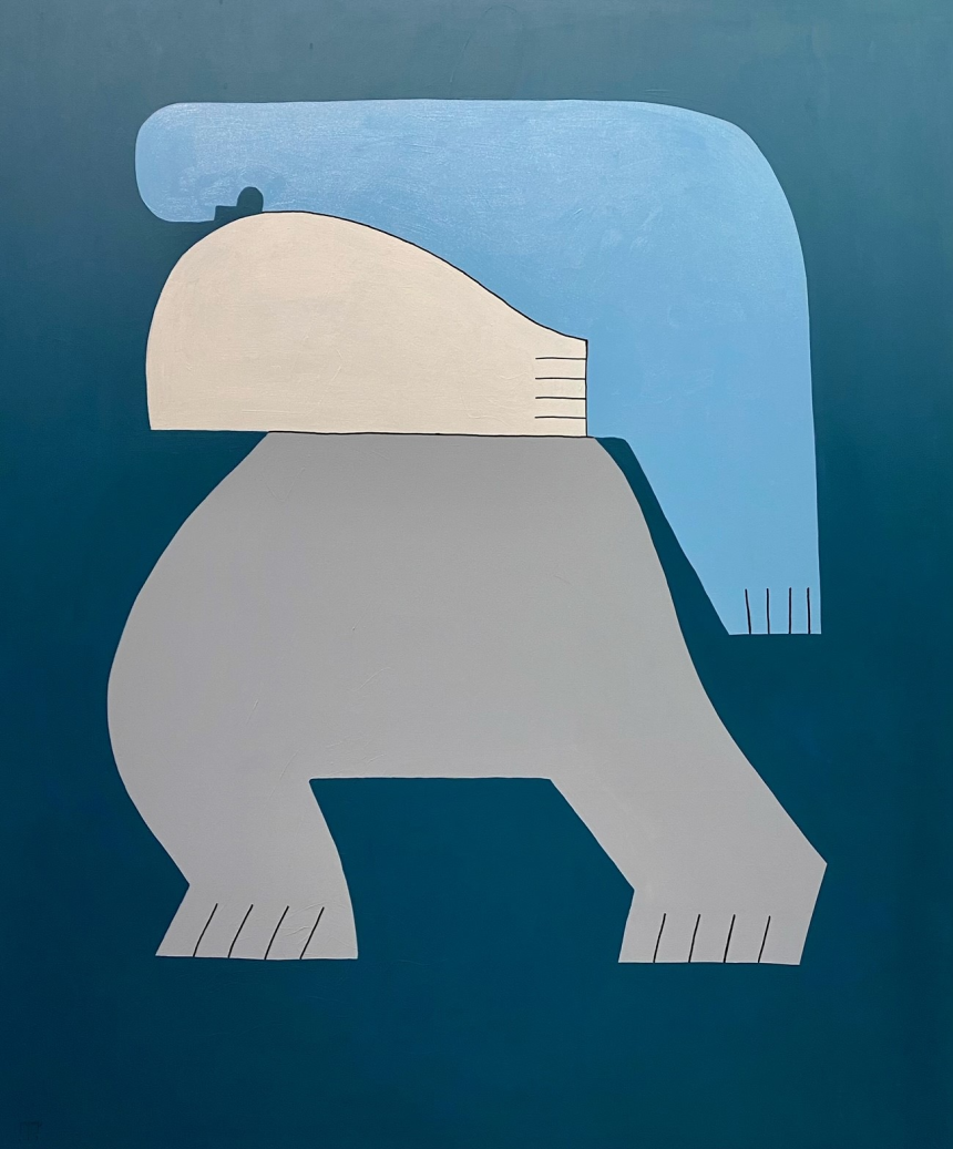 Des formes épurées et simplifiées de corps en mouvements sont composées avec art et créativité. Il n'y a certes pas de textures ni de couches superposées dans la peinture, il y a pourtant un travail de figures qui agence des courbes suggestives.