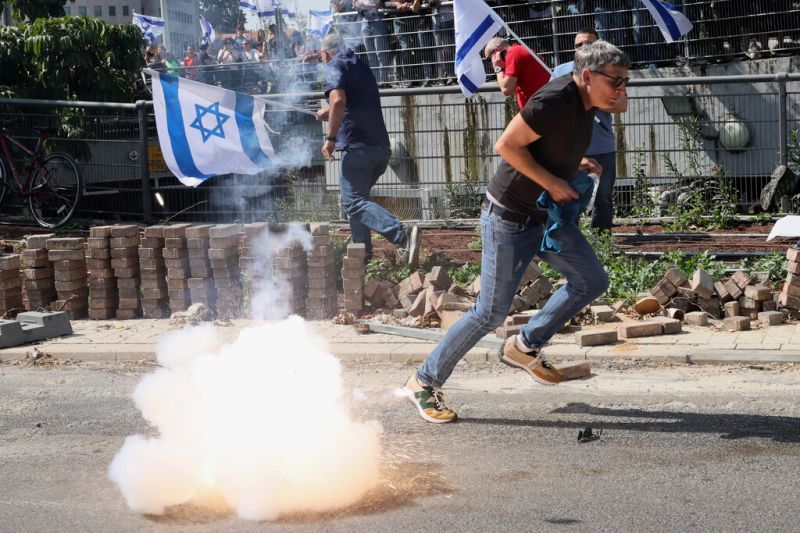 À Tel-Aviv, les manifestants qui s'opposent à la réforme judiciaire de Netanyahu ont été fortement réprimés par la police israélienne. Des canons à eau et des grenades assourdissantes ont notamment été utilisés contre les manifestants.