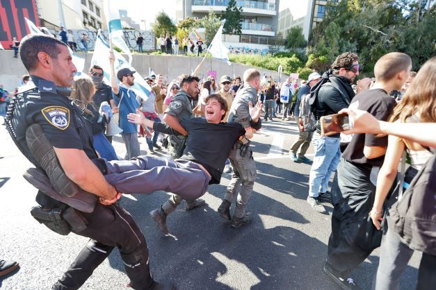 A Tel-Aviv, des milliers de personnes arborant également le drapeau israélien manifestent dans le centre de la ville, encadrés par des policiers à pied et à cheval. Les manifestants ont notamment bloqué la principale autoroute urbaine.