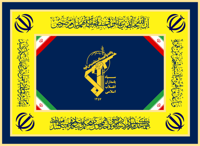 L'étendard du Corps des Gardiens de la Révolution islamique en Iran, "Sepah Pasdaran Ingelab Islami", ou Pasdaran.