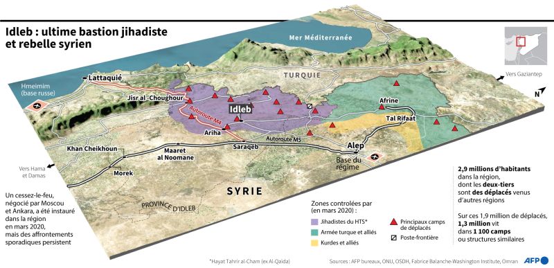 Les régions échappant au contrôle de Damas dans le nord de la Syrie comptent présentement plus de quatre millions d'habitants, dont au moins la moitié sont des déplacés. Parmi ces régions, Idleb est la dernière enclave résistant au régime malgré des années d'offensives meurtrières soutenues par la Russie.