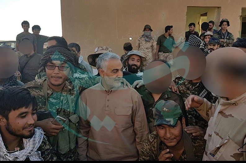 L'ancien chef des Forces al-Qods tué par les Américains dans une frappe à Bagdad, Qassem Soleimani, lors d'une visite chez les combattants afghans Hazaras (chiites) de la Brigade Al-Fatimiyoun, en Syrie.