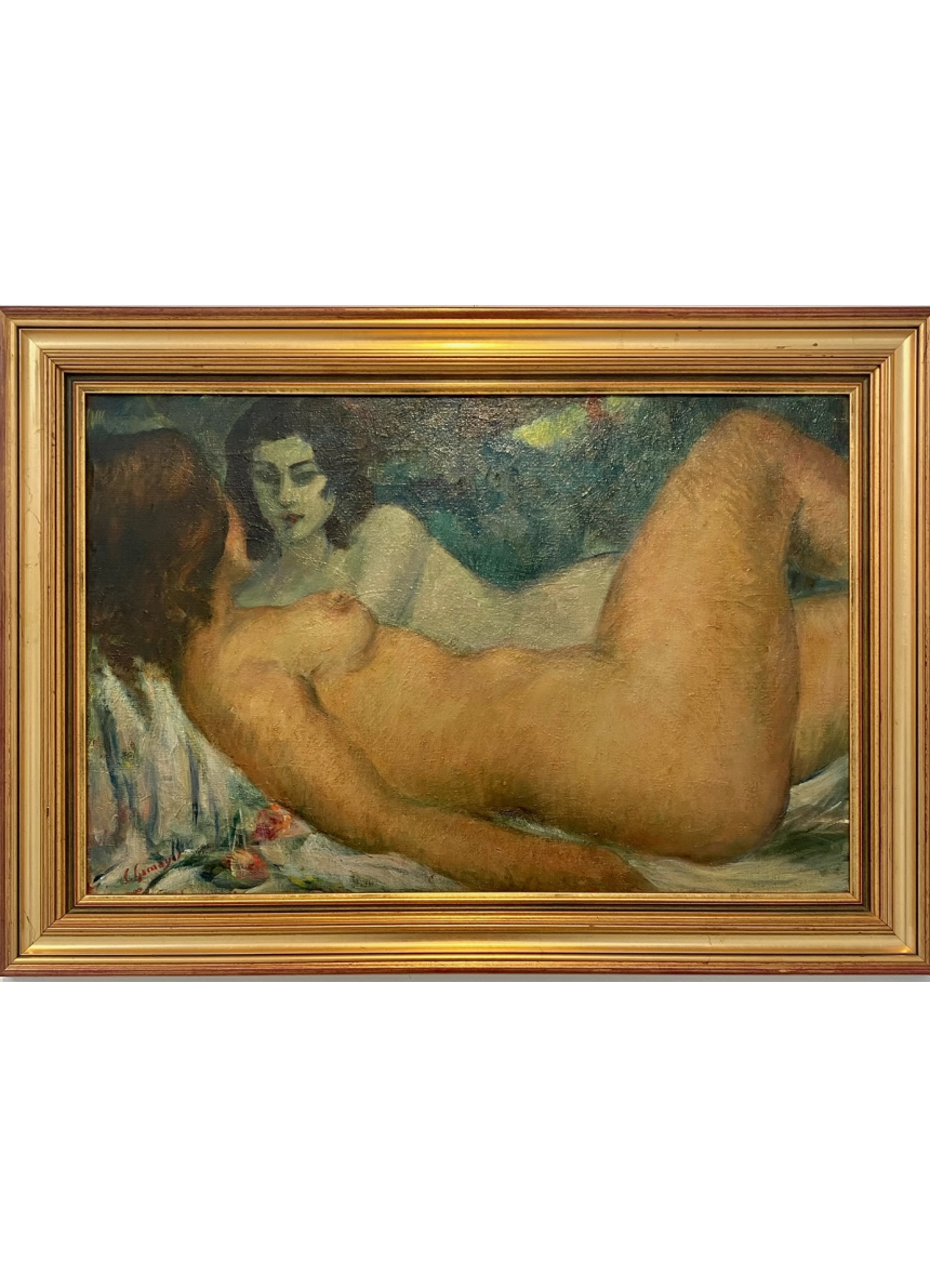 Nous admirons cinq de ses magnifiques œuvres exposées à la galerie Sheikh Zayed de la LAU. Nous découvrons ainsi un Carnaval qui n'est pas sans rappeler Le déjeuner des canotiers ou le Bal du moulin de la Galette de Renoir, dont l’artiste est un grand admirateur. Une autre toile attire notre attention: il s’agit de deux femmes nues. Les corps sont travaillés dans les moindres détails et le thème, si osé pour l’époque et le pays, met en valeur l’art innovateur de César Gemayel. L'artiste maîtrise tout autant ses coups de pinceaux impressionnistes sur une autre toile représentant un bouquet de fleurs rouges, ressortant si poétiquement en arrière-plan.