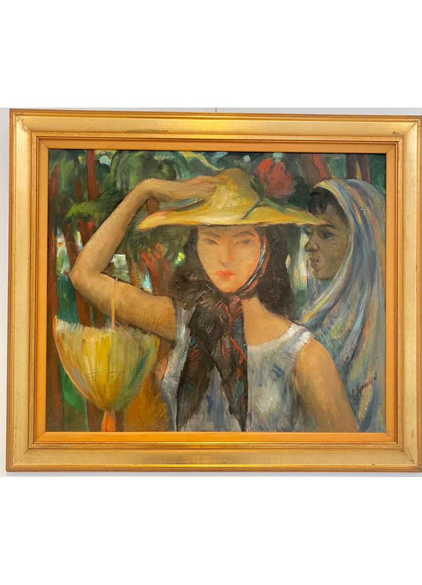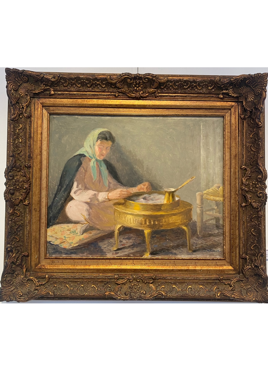 C’est avec autant de bonheur que nous découvrons les cinq toiles de l’artiste Moustafa Farroukh. Nous avons le plaisir de rencontrer son fils, Hani Farroukh, présent au vernissage, qui raconte les toiles de feu son père et partage ses souvenirs d’enfance en présence des trois autres grands maîtres exposés. Né en 1901, Moustafa Farroukh reçoit un diplôme de l’Académie des beaux-arts de San Luca, en Italie, et continue ses études à Paris où il baigne dans le courant artistique de l’époque. Ses mentors sont Paul Émile Chabas et Jean-Louis Forain. Il a la chance d’exposer son art dans les salons parisiens. De là, il part en Espagne où il explore l’architecture andalouse.
