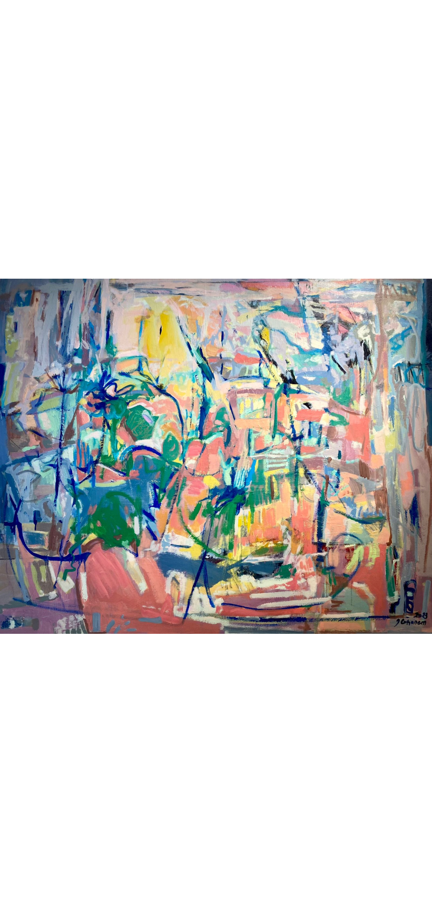 Reconnue pour l’aisance de son expressionnisme abstrait, Irène Ghanem est une artiste libanaise, née à Beyrouth, et qui, bien qu’enfant de la guerre, défie les noirceurs de la vie à travers sa peinture joyeuse et fraîche. Cet appétit pour la vie, qui s’est développé́ depuis son plus jeune âge, est le pivot de l’art de la peintre. Elle délie son pinceau et dilue ses couleurs pour mettre en scène des compositions chargées d’ondes positives.