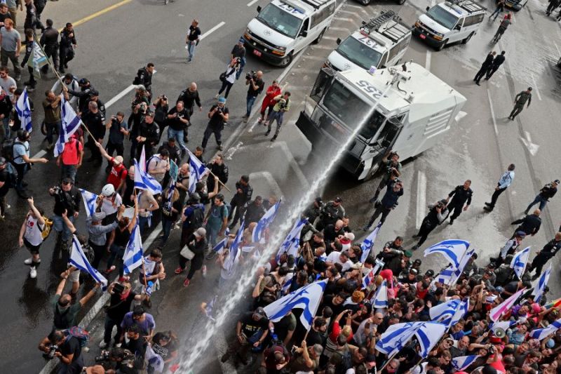 Suite au vote à la première lecture du projet de loi sur la réforme judiciaire, des dizaines de milliers d'Israéliens ont manifesté jeudi contre le gouvernement. Plusieurs heurts ont éclaté avec les forces de l'ordre, qui ont utilisé des canons à eau pour disperser la foule.