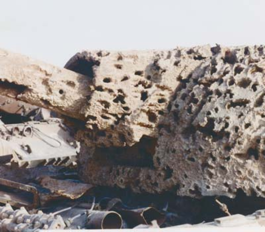 Selon le Programme des Nations unies pour l'environnement (PNUE), l'uranium appauvri est un "métal lourd, chimiquement et radiologiquement polluant". Les obus perforants atteignant leur cible produisent une poussière d'uranium ainsi que des fragments de métal.