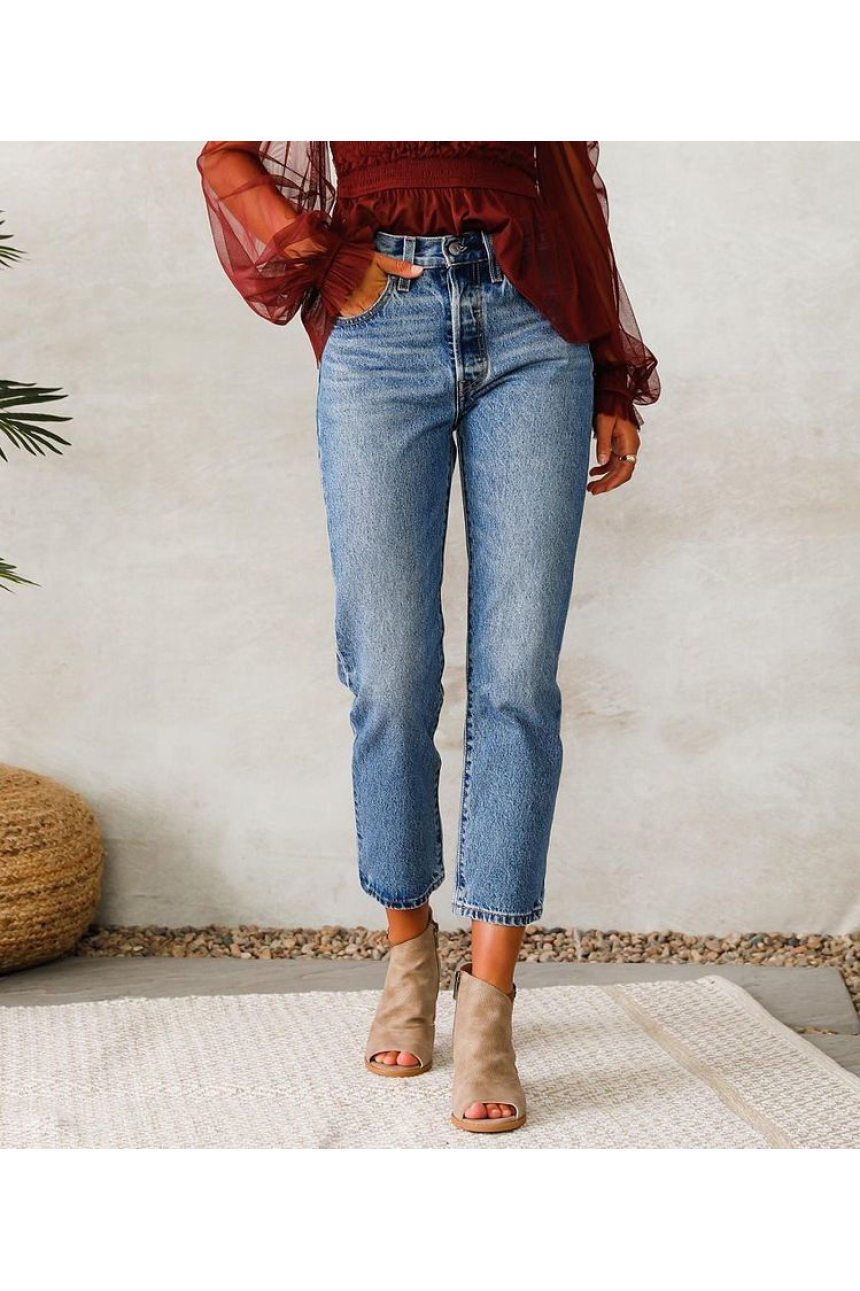 Le jean straight, droit ou encore appelé regular, est le plus ancien de tous les modèles de pantalons denim. C’est aussi le jean indémodable qui traverse les années sans un pli. Longtemps jugé trop classique, il revient en force grâce à son côté rétro vintage. Sa coupe, comme son nom l'indique, est droite, ne colle pas à la peau et suit toute la longueur de la jambe. Ce jean magique convient à toutes les morphologies. En taille basse, il convient parfaitement aux morphologies en H dont la taille n’est pas marquée. En taille haute, il convient aux femmes à la taille marquée. Les silhouettes en X ou en 8 seront ainsi particulièrement mises en valeur.