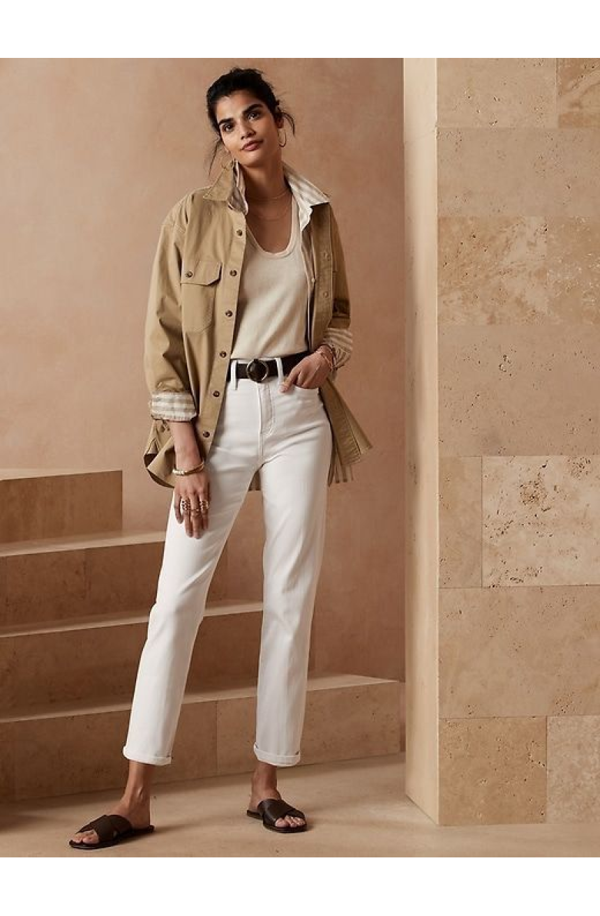Plutôt mal partie au début, cette coupe qui nous vient tout droit des années 70, détrônée par le slim dans les années 90, fait son grand come back dans nos placards. Le jean mom a une coupe droite, confortable au niveau des hanches, qui se resserre au niveau des chevilles. Le jean mom convient particulièrement aux femmes minces qui ont les jambes fines. Les morphologies en H, dont les épaules et les hanches sont alignées et la taille peu marquée, sont parfaitement mises en valeur dans un jean mom. Les femmes à la morphologie en V, dont la carrure est plus large que les hanches, se doivent absolument de posséder un jean mom dans leur garde-robe! Si vous avez des formes et êtes séduite par le jean mom, il vous suffit de trouver quelques astuces pour pouvoir arborer votre jean chouchou. Pensez à équilibrer le haut pour harmoniser votre silhouette. Vous pouvez porter des blouses fluides, à volants, à manches ballon pour apporter du volume et s'accorder avec la coupe loose du jean mom. La taille haute apportera de la verticalité, ce qui affinera votre silhouette. Si vous êtes pulpeuse, privilégiez un jean dans les tons foncés.